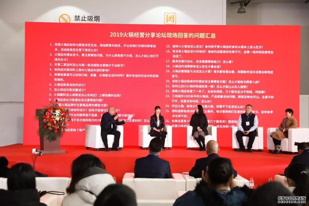 上午10點(diǎn)30分,山東火鍋餐飲協(xié)會和中貿(mào)集團(tuán)主辦的火鍋經(jīng)營分享論壇正式開始,組委會邀請到彥盛彥·爛豆花火鍋連鎖創(chuàng)始人董彥麗女士,山東省火鍋餐飲協(xié)會秘書長華冰先生,大嘴吃泉城創(chuàng)始人趙欣,山東菩悅?cè)鹩髽I(yè)管理咨詢有限公司總經(jīng)理徐美女士以及山東策世品牌策劃有限公司首席品牌官王丹女士5位火鍋餐飲行業(yè)重量級嘉賓,現(xiàn)場解答觀眾的提問,圍繞火鍋店經(jīng)營,透析痛點(diǎn),探討實(shí)戰(zhàn)。