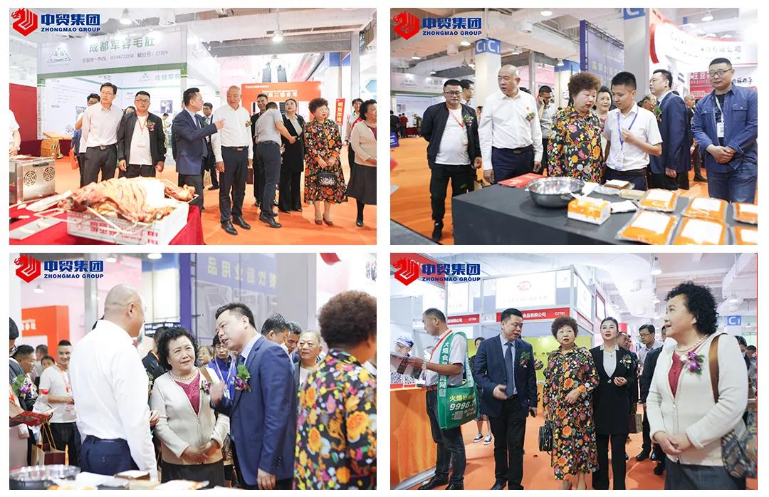 展會現(xiàn)場火鍋產(chǎn)業(yè)相關(guān)協(xié)會領(lǐng)導(dǎo)在中貿(mào)國際會展集團董事長杜磊先生陪同下觀看我們展會的精美展品。